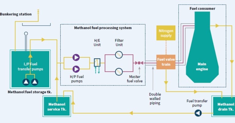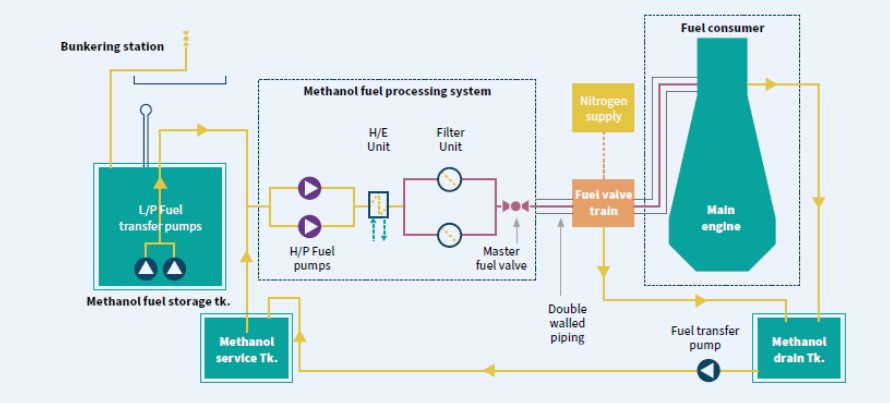 (Methanol storage, processing and supply system, Engine retrofit report 2023, Lloyd's Register)